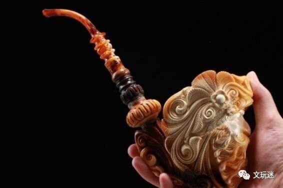 海泡石质轻,散热性好,而且由于石质细腻、柔软,故能在外壁雕刻出十分精巧细致的浮雕图案(一般取材自古希腊、古罗马的神话故事,也有动植物、人物等造型),具有很高的艺术价值。烟嘴一般用天然 / 合成的琥珀,或者动物的角、骨制造。