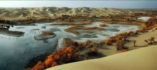 这是被称为中国最奇妙的勾魂秋色、曾因张艺谋的《英雄》中张曼玉和章子怡一场树林决战而名扬天下,如今又吸引无数人从全国各地慕名而来的额济纳胡杨林。