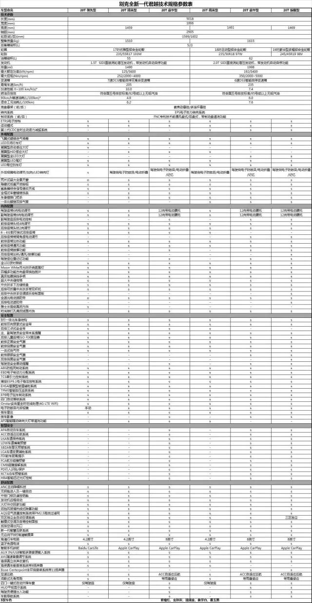 别克在同级别车中除了油耗以外,性价比一直都没有什么可挑剔的。我们先来看一看具体配置: