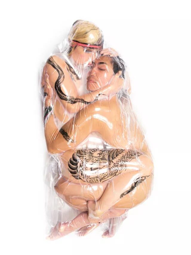 “As the shooting continues over multiple takes, the pressure of the vacuum seal grows stronger. At the same time, the two bodies start to communicate, and whether through unevenness of limbs or the curve of joints they begin to draw a shape of what they want to express. The two lovers draw closer until they finally transform into a single being. Looking at these vacuum-sealed packs of love, we can imagine a more peaceful world. For me, the vacuum pack is only a means: the important thing is connecting to someone.”