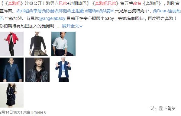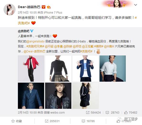 跑男官方微博发官博称迪丽热巴加入跑男团后,迪丽热巴也转发微博表示自己是将会替补baby加入跑男。