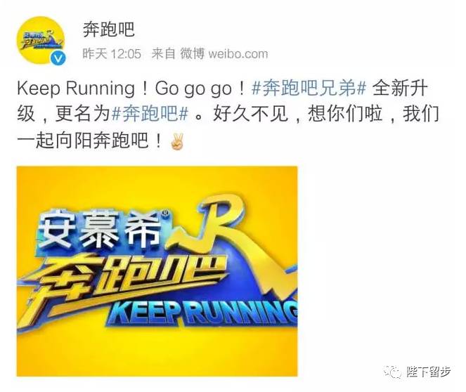 官方微博也发声确认,《奔跑吧兄弟》改名为《奔跑吧》!