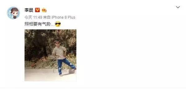 今天李晨在微博晒自己的童年照,并配文“照相要有气势...”