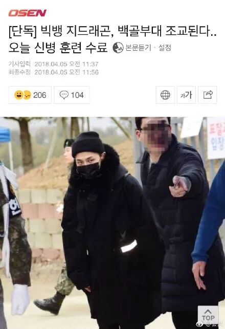今天,韩国BIGBANG组合成员权志龙结束了在江原道铁原三师团新兵教育队进行的为期6周的基础军事训练,并参加了新兵训练结业式。