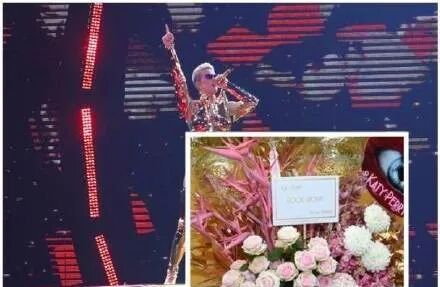 昨晚,美国流行乐坛天后Katy Perry在台北小巨蛋开唱,周杰伦昆凌联名送上花篮。