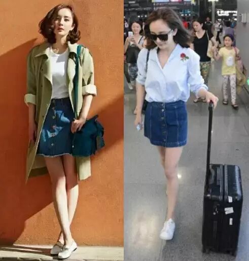最近,看到杨幂和宋佳的街拍中,都出现了一条裙子~