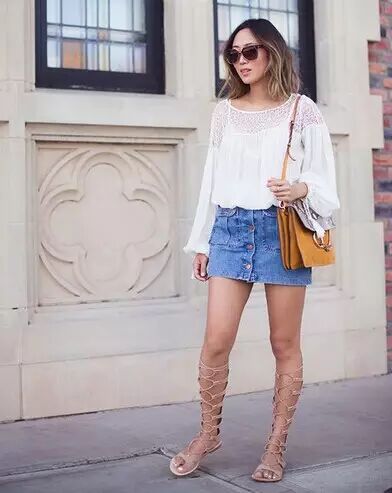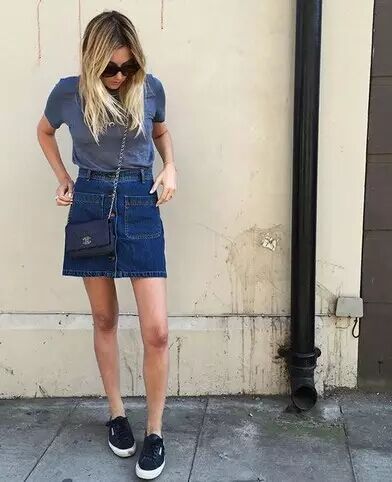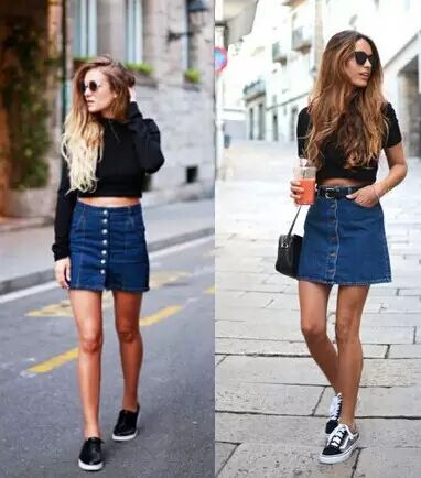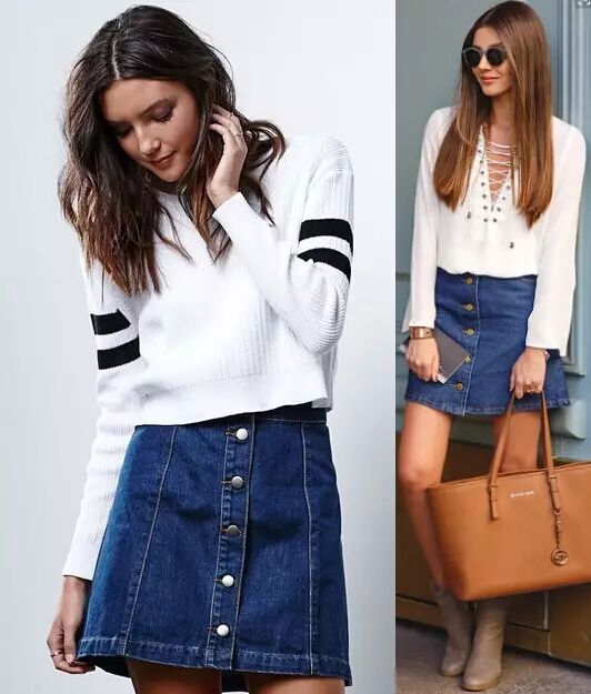 长袖上衣搭配牛仔半裙,也很nice~牛仔半裙就是这么百搭!