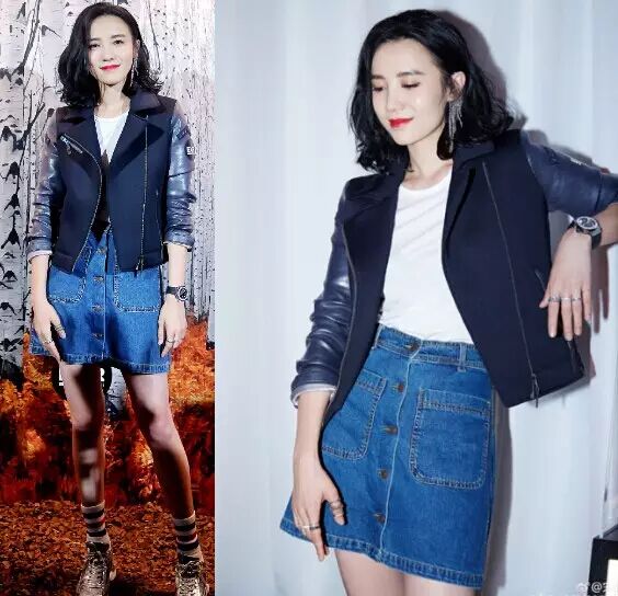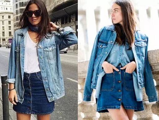 牛仔外套+牛仔半裙,帅气又不乏女人味~