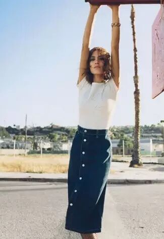 这还不算,在各个平价品牌和时装品牌的店里,你都能找到这款牛仔裙,我能说它从去年冬天一直到现在一直都在流行吗?