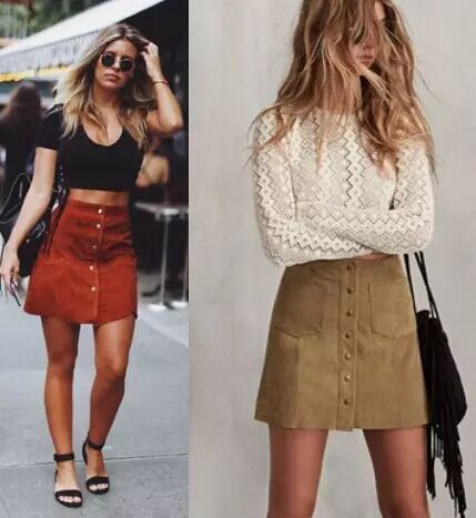 麂皮的半裙搭配牛仔外套,也很帅气,颜色又洋气!