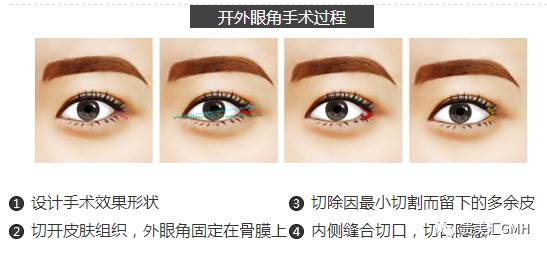所以呢,如果你也想像秀智、十元和滨崎步一样get一双又大又长的眼睛,只做眼睛放大术(外眼下置)还不够,配合开外眼角一起做才能让眼裂横向也扩大,开外眼角可以让眼睛变得更长,开大程度一般在1.5mm—2mm左右,效果灰常明显 ↓