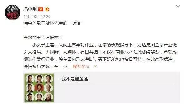 昨天一条“潘金莲致王健林的一封信”又将王思聪和冯小刚推向了风口浪尖。