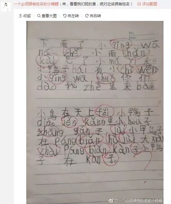 一个小朋友写的日记,不仅用上了方言,可能还是有点儿跑调的方言: