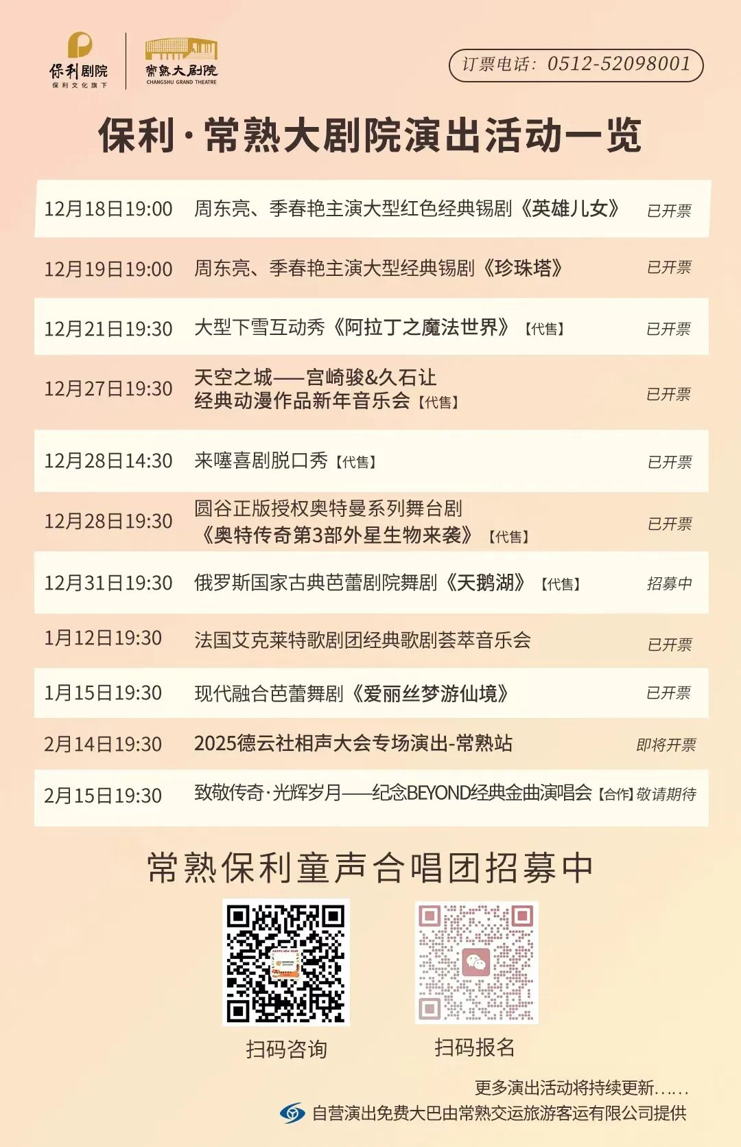 3、本场演出为代售项目,购票无积分,除以上活动外,其他优惠不享受,代金券、欣艺卡等特殊卡券无法使用,常熟大剧院注册会员可使用电子钱包余额支付。特此告知,望知悉!