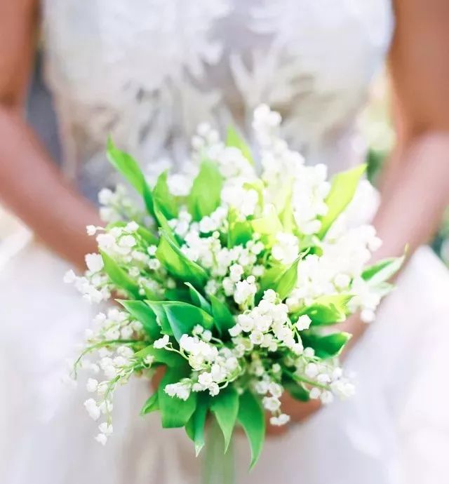 铃兰花的花语是“幸福归来”,别看这小小一束捧花,据说价格近万。