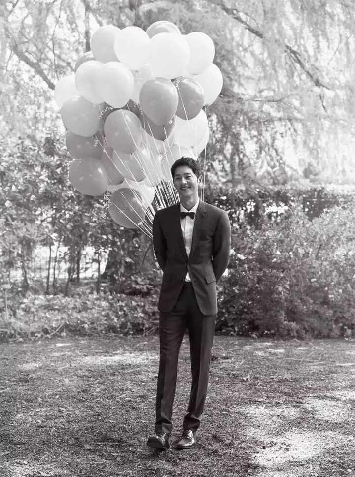 宋仲基的胸花,是铃兰花,和宋慧乔手上的捧花一样。