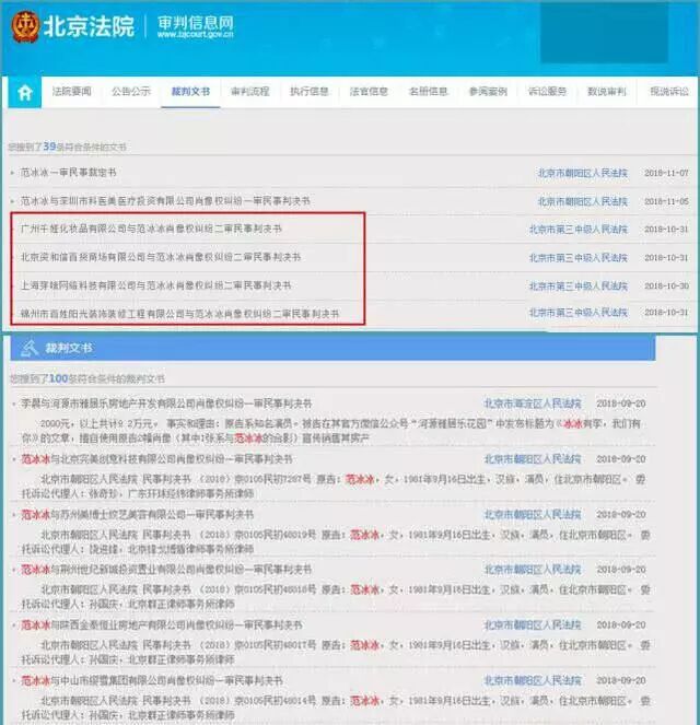 从北京法院的公开信息中看,从12月2日到12月10日,不到10天的时间里,一共有5起关于范冰冰肖像权的案子得到了处理,这个速度可以说是很快的了,看来范冰冰虽然有案在身,但是影响力还是在的,案子全部以范冰冰方胜诉。