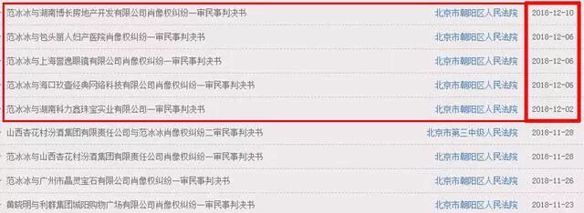 而这仅仅是九牛一毛,在此之前,范冰冰关于自己肖像权的案子一刻都没有停歇,过去的10月和11月都有在处理相关的案子。