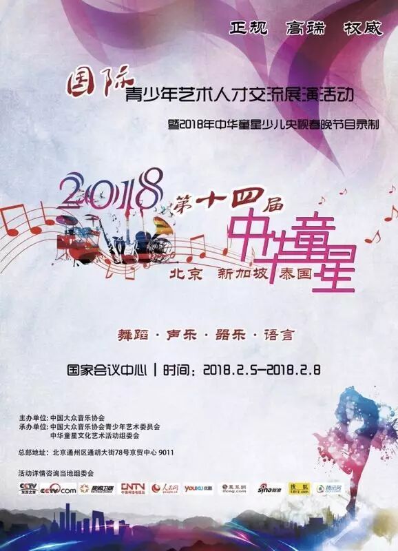 由中国文化管理协会、中国大众音乐协会主办。中国大众音乐协会青少年艺术委员会承办的中华童星2018央视少儿春晚将于2018年2月5日-8日在北京国家会议中心举行。
