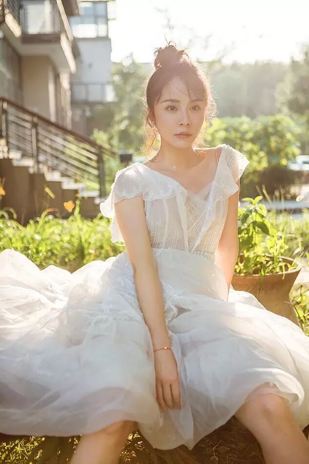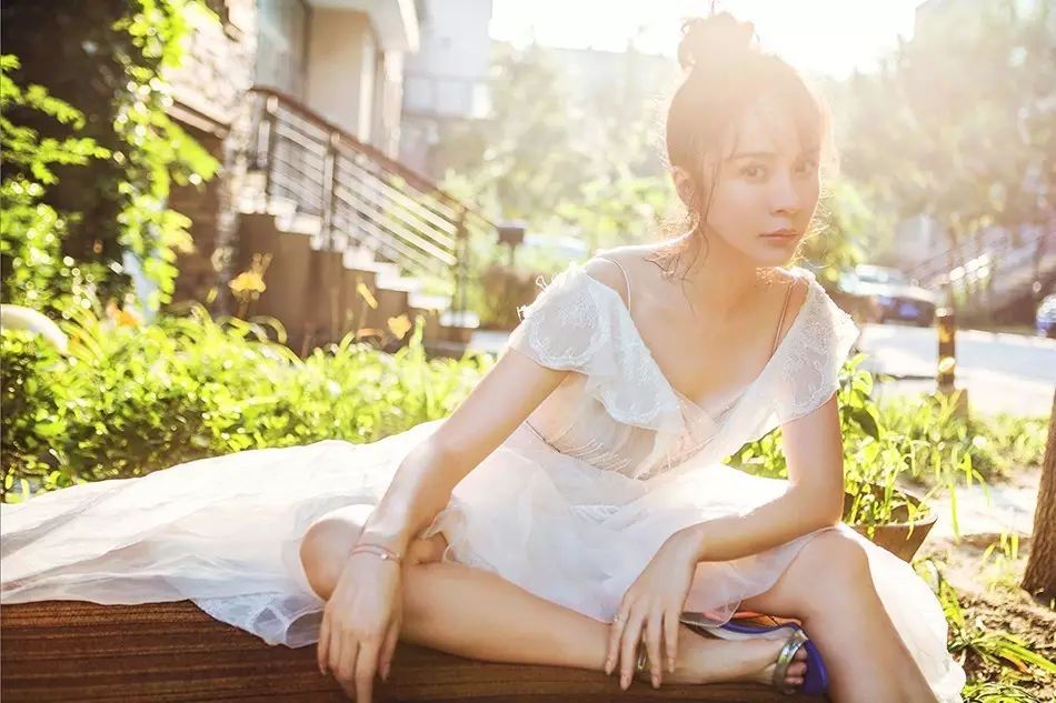 盛夏夺目的阳光下,杨若兮身着白色纱裙仙气逼人。