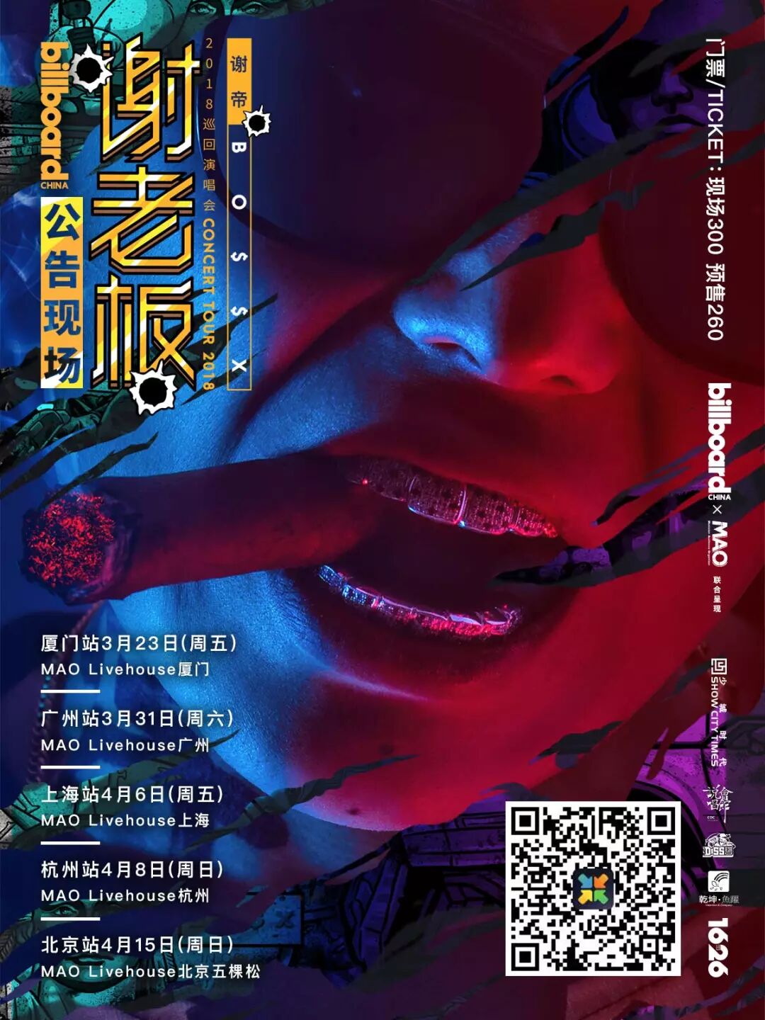 Billboard公告现场首场落地巡演-谢帝谢老板首次全国巡演