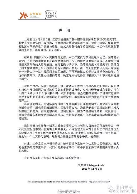 随后,周笔畅工作室就发出声明,称节目组通过剪辑等手段,歪曲事实真相。