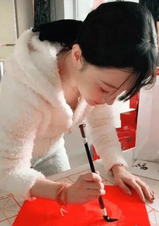 甜馨的舅舅还发了一段李小璐写毛笔字的视频,