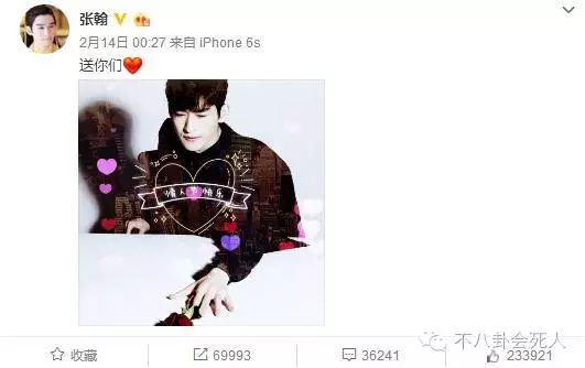 情人节的这一天,张翰对粉丝表白,低调和娜扎过节~~