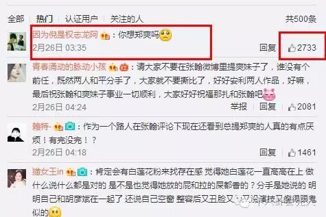 自从张翰公开恋情之后,张翰的微博再也没有消停过,和爽妹子分手之后,删除了有关郑爽的所有微博,但是,郑爽从此以后却深深的扎根在了张翰的微博评论中。