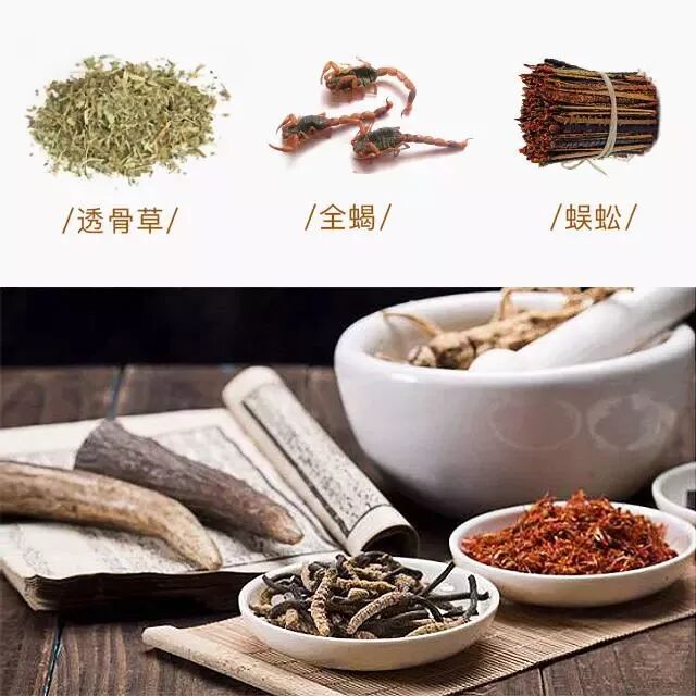② 辅以“透骨草、全蝎、蜈蚣”等50味风湿骨痛止痉要药,能祛湿拔毒、通络止痛,对风湿骨痛有很好的镇痛效果。