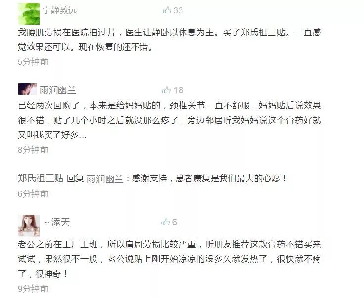 郑氏祖三贴 回复 闲庭信步:您的满意和康复是我们最大的追求!