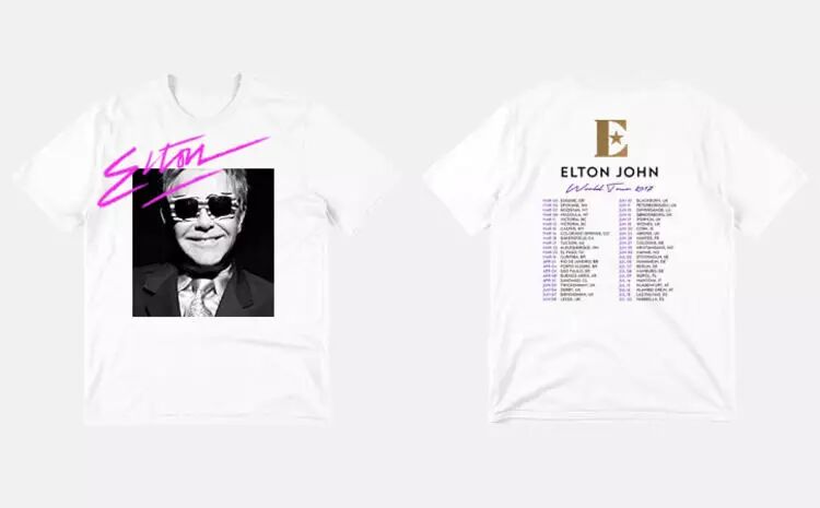 由于 Elton 使用的乐器是钢琴,黑白被选为了主色。在宣传海报中,George 还加入了闪亮的金色和紫色,海报中的分割线则是根据星星标志的角度线划分的,Elton John 过去巡演时的经典旧照被拼贴在其中,潮流感与经典元素由此被组合在了一起。