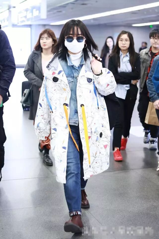 花花的长款外套内搭牛仔外套,最里面穿的是白色高领打底衫,下搭一条浅色牛仔裤,那时的周笔畅留着长发,那样看起来也是美美的。