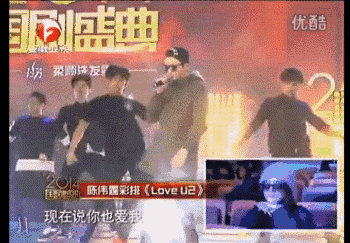 2014年国剧盛典,陈伟霆彩排的时候,赵丽颖就在台下一脸呆萌看等等表演