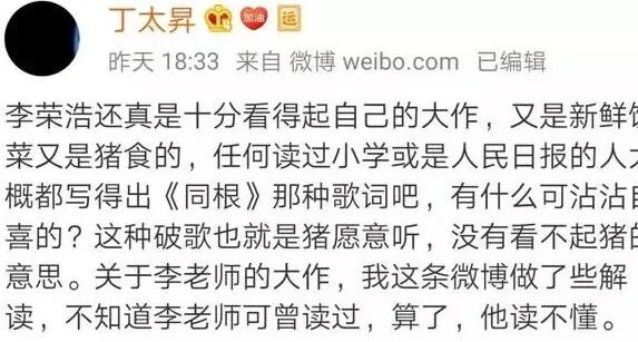 前两天李荣浩为抗击疫情所作的新歌《同根》,就遭到了某乐评人的点名批评。巧合的是,这位乐评人还是丁太升。