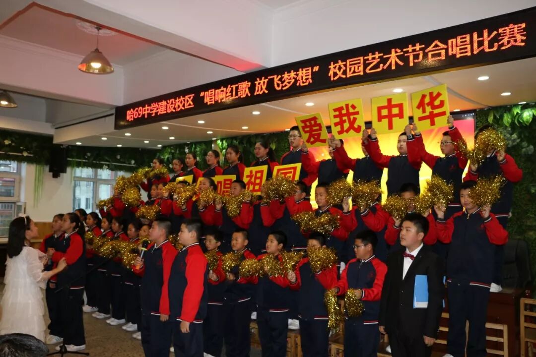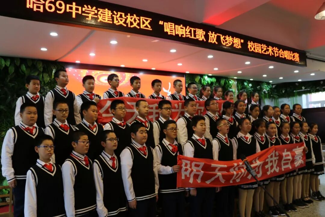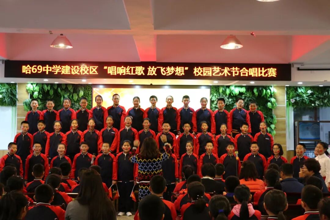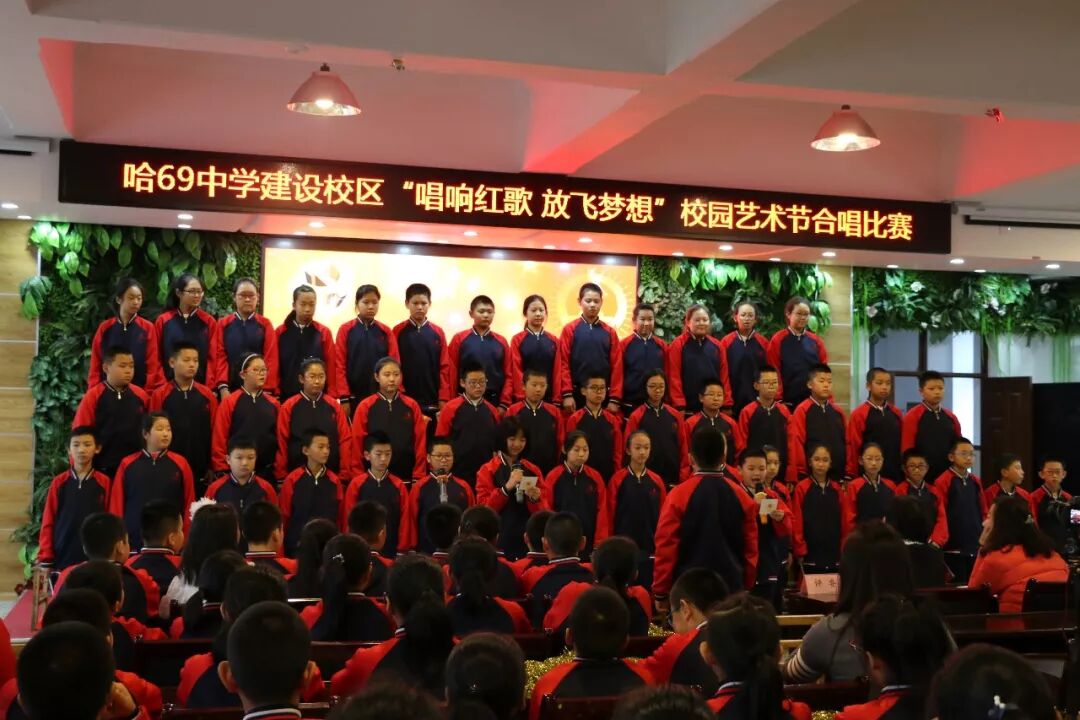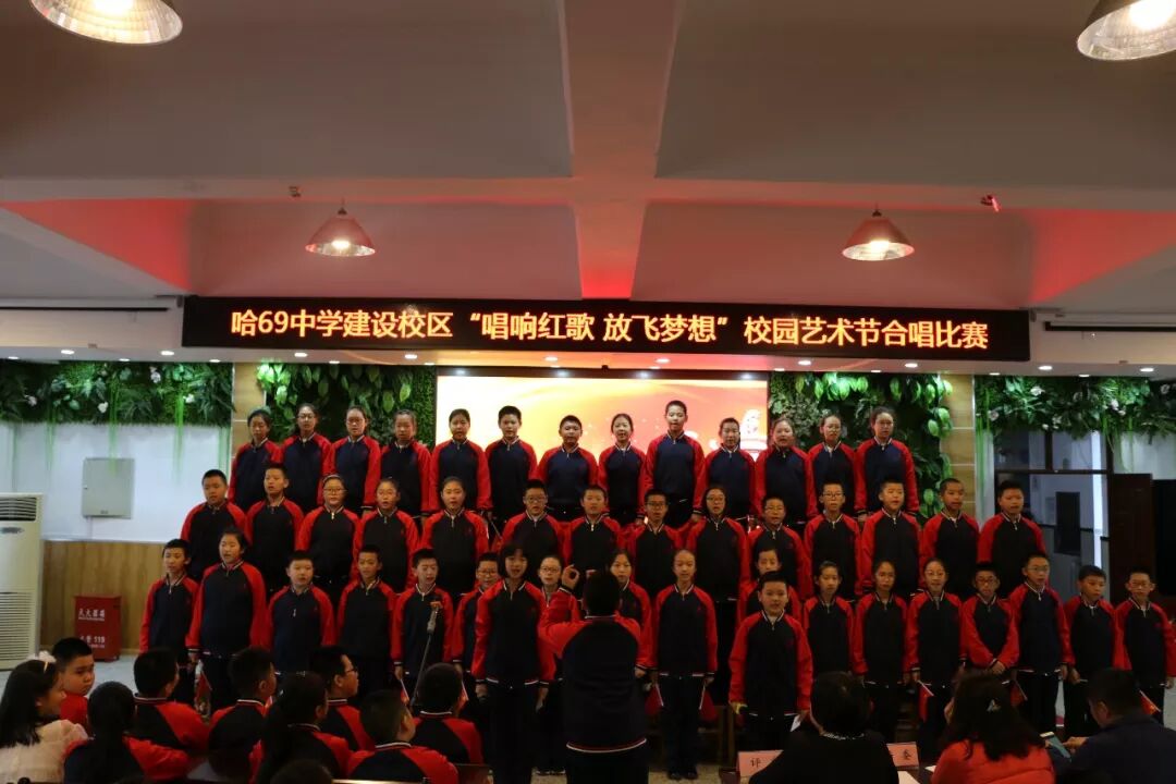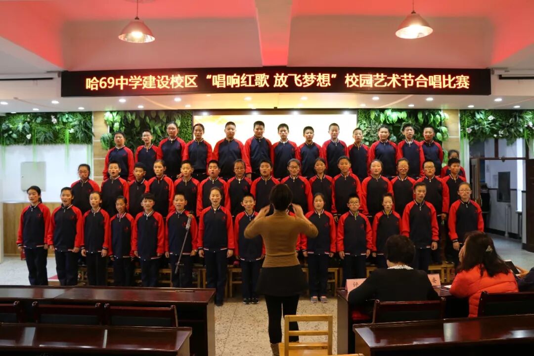 为了进一步丰富校园文化生活,陶冶学生的爱国情操,增强班级凝聚力,促进学生的全面发展,弘扬文明健康的校园氛围和社会风尚,优化育人环境,并让广大同学用歌声来表达对祖国的热爱。哈尔滨市第69中学建设校区于2018年10月26日下午在五楼多功能能厅举办以“唱响红歌 放飞梦想”为主题的艺术节合唱比赛。此次合唱比赛8个班级共360余人参加。