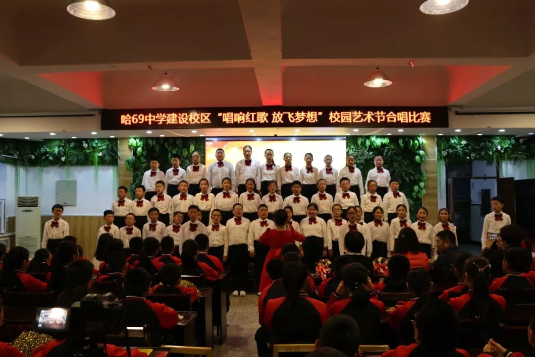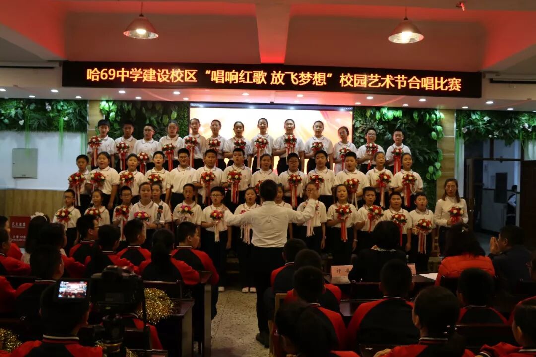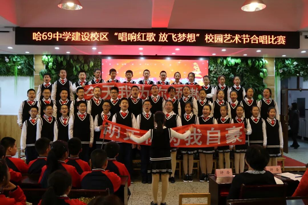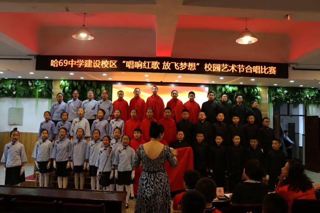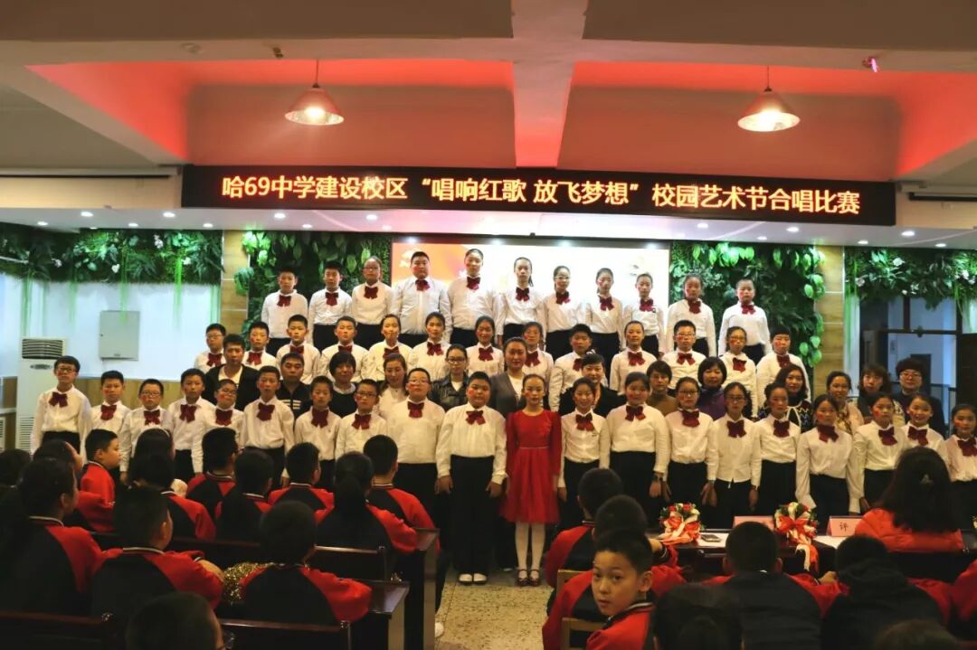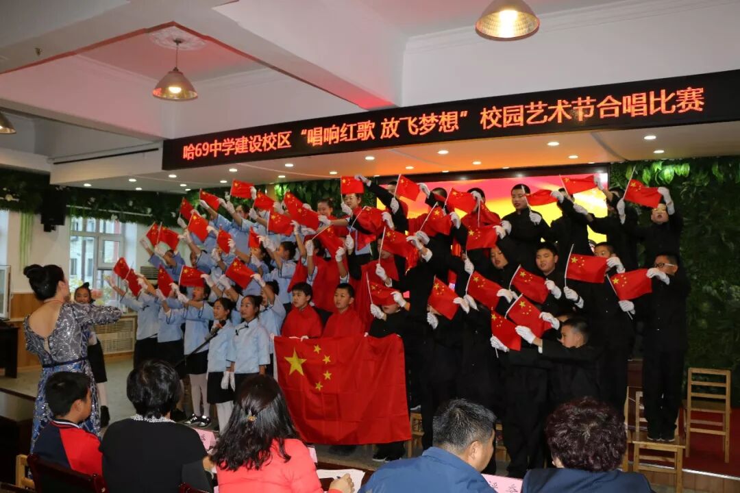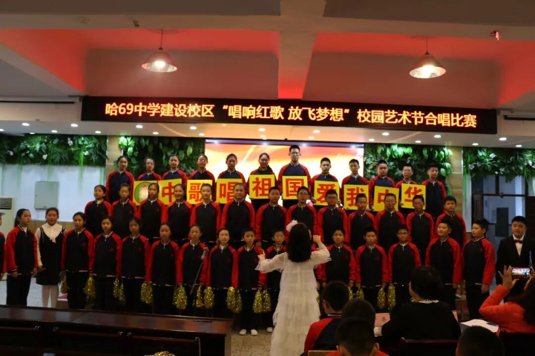 为了进一步丰富校园文化生活,陶冶学生的爱国情操,增强班级凝聚力,促进学生的全面发展,弘扬文明健康的校园氛围和社会风尚,优化育人环境,并让广大同学用歌声来表达对祖国的热爱。哈尔滨市第69中学建设校区于2018年10月26日下午在五楼多功能能厅举办以“唱响红歌 放飞梦想”为主题的艺术节合唱比赛。此次合唱比赛8个班级共360余人参加。