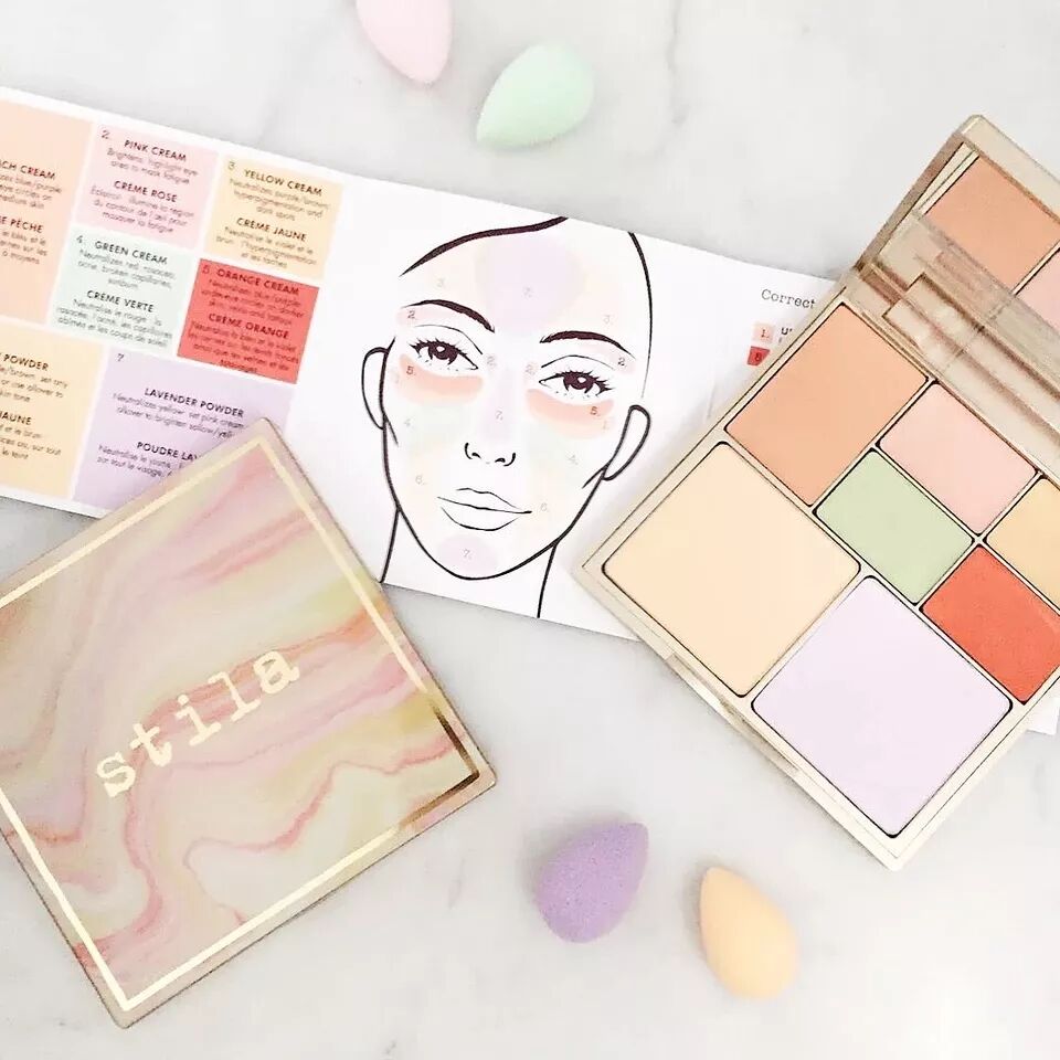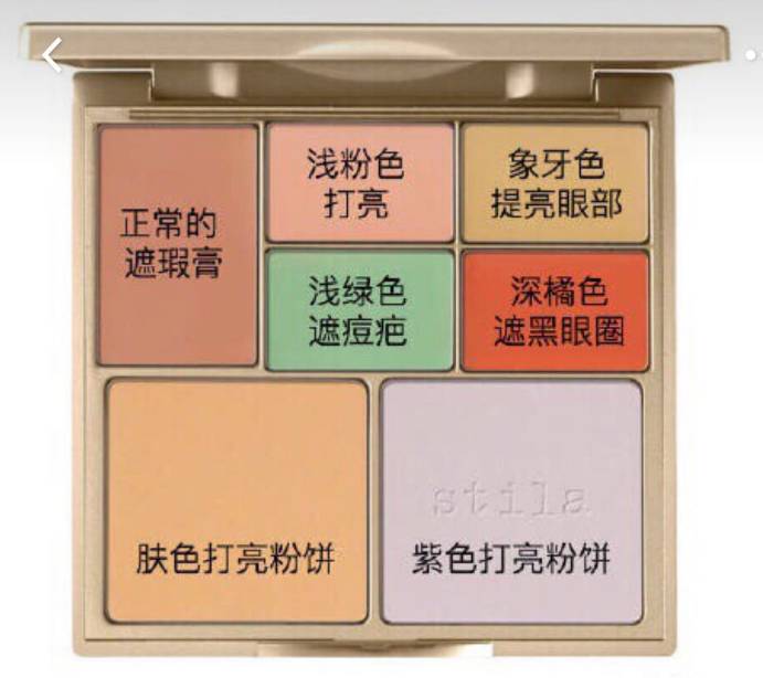 七色遮瑕盘包含5个膏状修饰色+2个定妆蜜粉