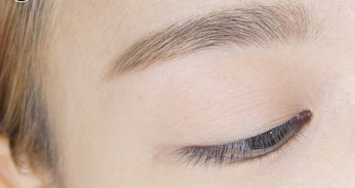 与发色相近的淡棕色眉粉中和了剑眉眉形的“锋利”感