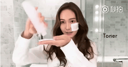首先要从护肤的步骤开始做起,洁面后用棉片蘸取化妆水敷在脸上约1分钟左右,然后摘下棉片拍拍脸。