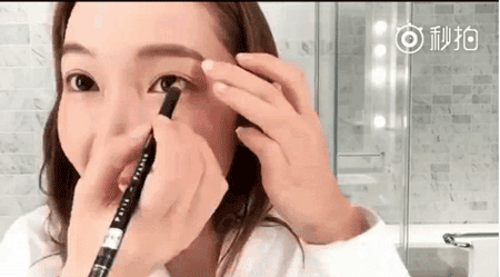 根据眼睛的轮廓画眼线,不要拉长也不要上翘,不仅看不出来画了眼妆,而且能自然地放大双眼。