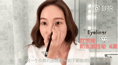用眼线笔的防水涂层将眼头和下眼睑链接在一起,能起到防脱妆的效果哦!