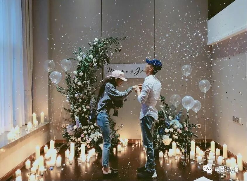 照片中托着她脸蛋的手还挺明显是位男性的,又引起了大家的猜测,是恋爱了吗?