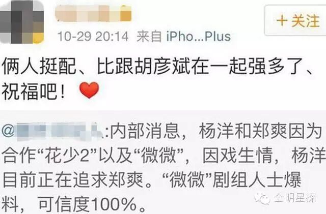 15年9月19日“娱某君”曝杨洋追郑爽?!“娱某君”是谁?哦就是那个随后乱说霍建华陈乔恩复合后来公开道歉的人~