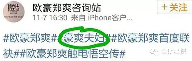 15年11月10日《悟空传》刚刚网传了一点点选角消息,当时只是“欧豪郑爽疑加盟”,cpf就卯足了劲儿给豪爽夫妇添柴加火起来了~!!都还没官宣,就30秒内赫然惊现cp资讯站官博!