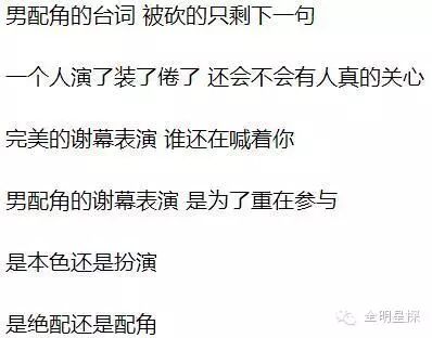 细数一下从全明星探曝光冰爽恋的15年8月20日、到曝光冰爽恋破局的16年3月28日,“男配角”斌斌的镜头仿佛真的只有一幕↓台词仿佛真的只有一句“分得久守得牢”,除此以外,整整七个月,冰爽再无铜矿!万众唱衰地开始,悄没声息地ending~