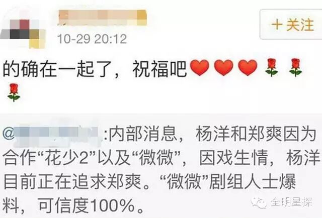 15月9月26日一堆微博号突然齐齐惊曝“杨洋介入冰爽已分手?!”