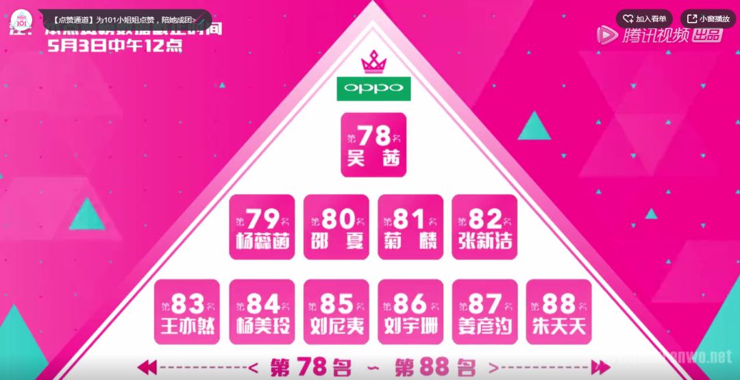 而腾讯的这个排名完全靠粉丝点赞投票,能拿到第三确实能说明她的观众缘好