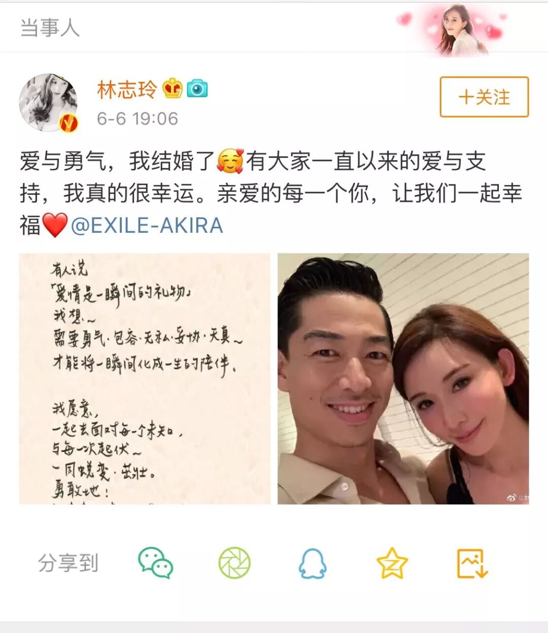 官宣婚讯的志玲姐姐依旧是一贯的优雅得体,除了感谢,就是祝福。