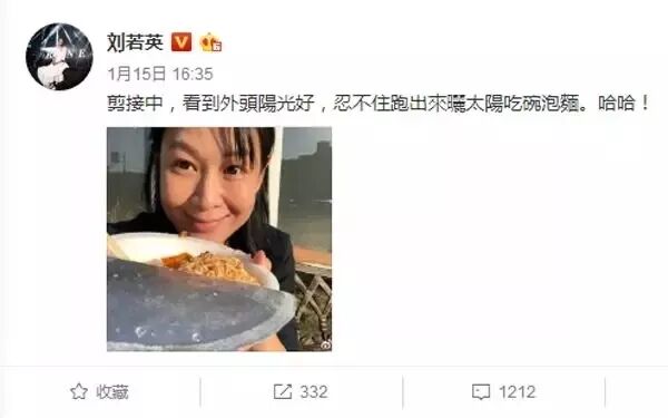 近乎素颜的照片里晒出自己的美食照,自然、亲切,还是那个我们喜欢的奶茶,即使眼角多了几道纹路也无惧。